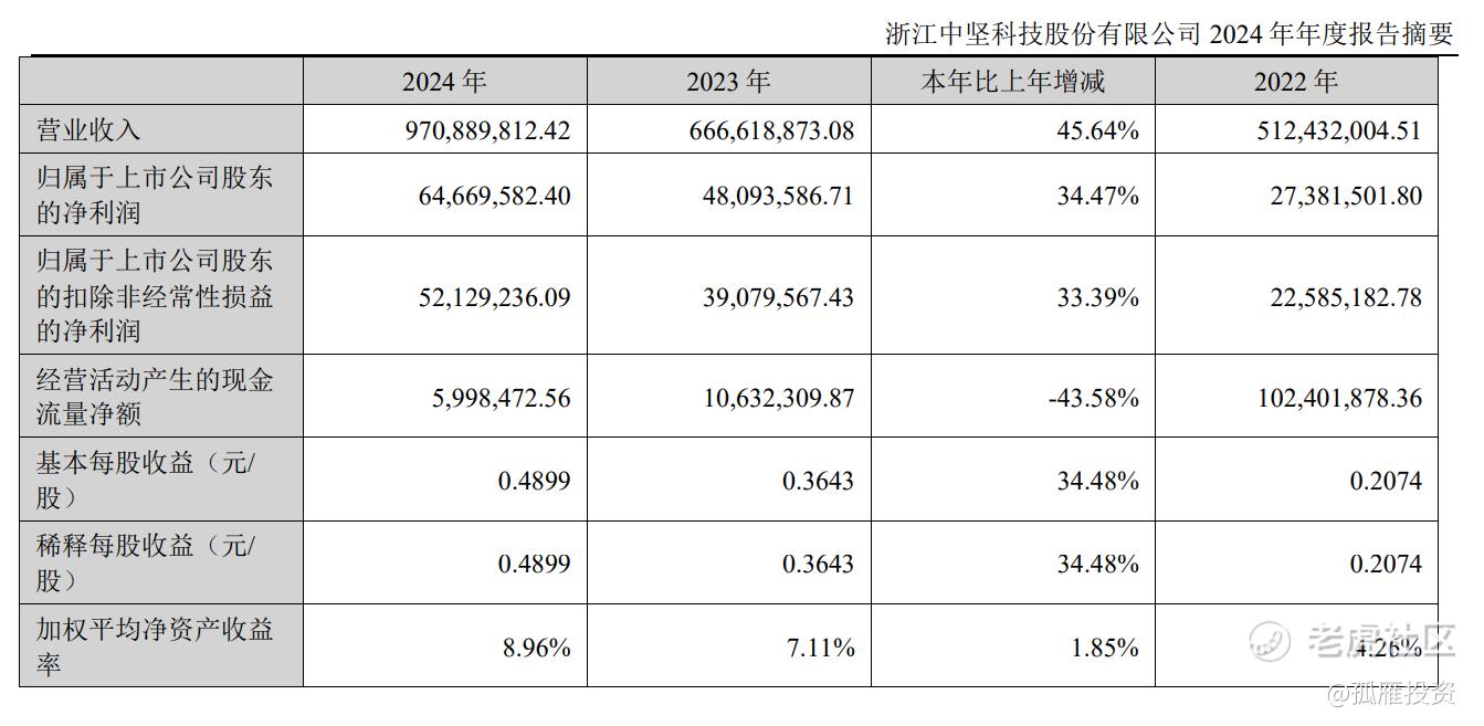 数据显示,公司2024年实现营业收入9.71亿元,同比增长45.64%;归母净利润6466.96万元,同比增长34.47%。