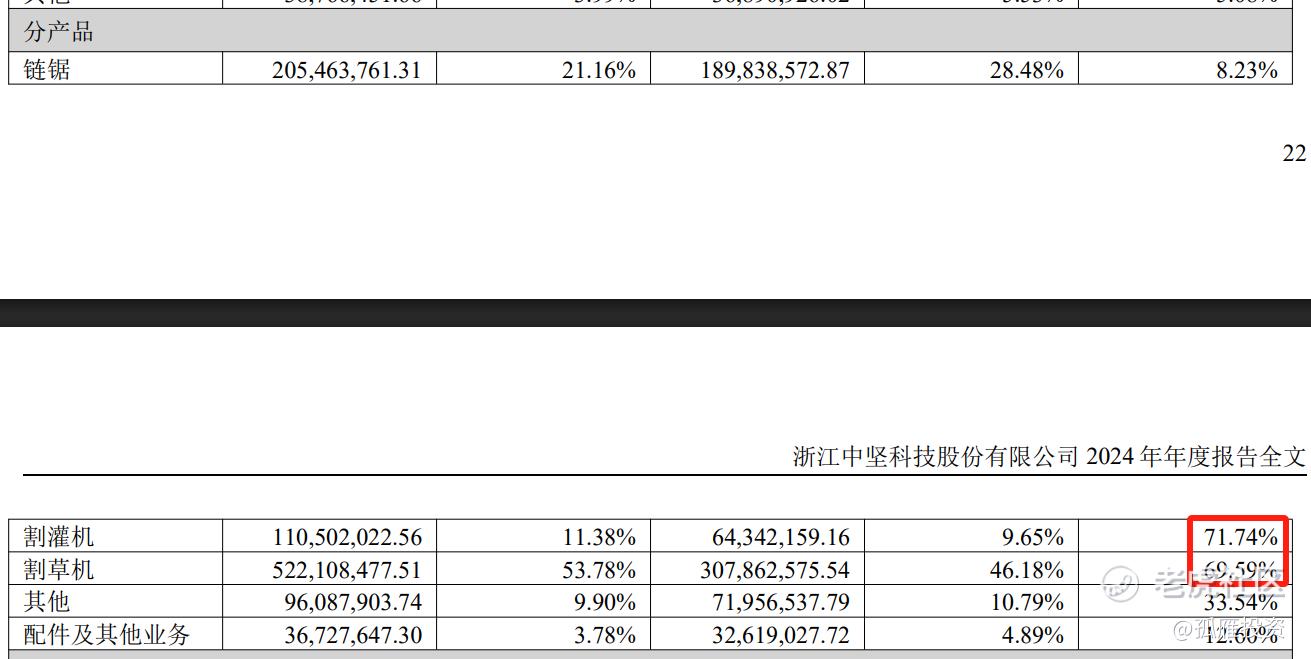 作为国内园林机械行业龙头,中坚科技2024年延续了海外市场的强劲表现。分产品看,割灌机收入1.11亿元,同比增长72%;割草机收入5.22亿元,同比增长70%,成为拉动营收的主力。