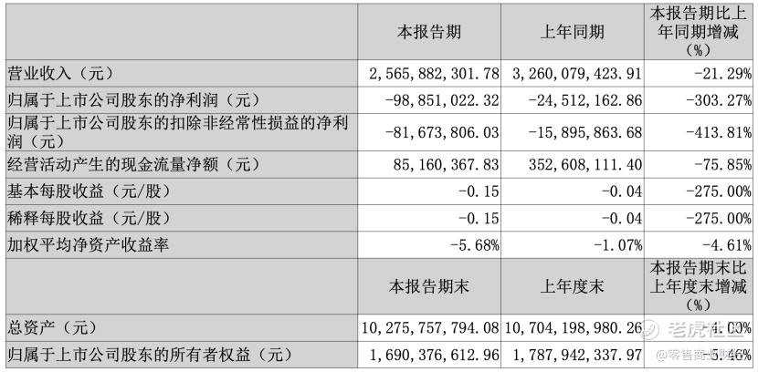 4月27日消息,中百集团公告,2025年第一季度实现营业收入25.66亿元,同比下降21.29%;归属于上市公司股东的净利润亏损9885.1万元,上年同期净亏损2451.22万元;基本每股收益-0.15元。