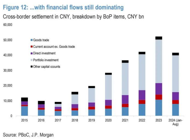 图 12:…… 金融流动仍占主导地位 人民币跨境结算(单位:10000 亿元)