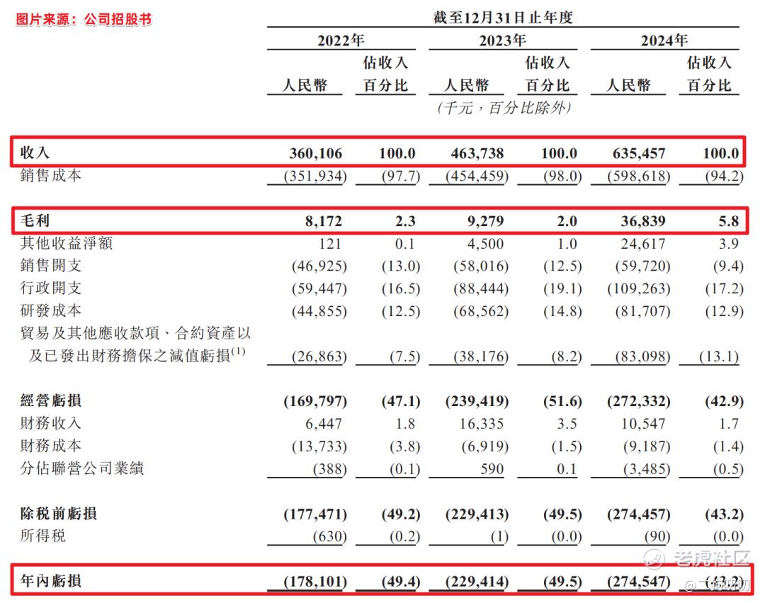 利润方面:公司在2022年、2023年、2024年毛利润分别为820万元、930万元、3680万元,同期毛利率分别为2.3%、2.0%、5.8%。期间公司净利润分别为-1.78亿元、-2.29亿元、-2.75亿元,且亏损呈现出逐年扩大的趋势,三年合计亏损6.82亿元。