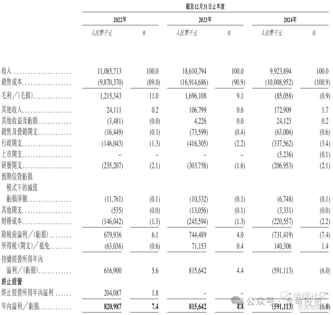 毛利/毛损:2022年毛利12.15亿人民币,2023年毛利16.96亿人民币,截止2024年毛损8505.8万人民币。