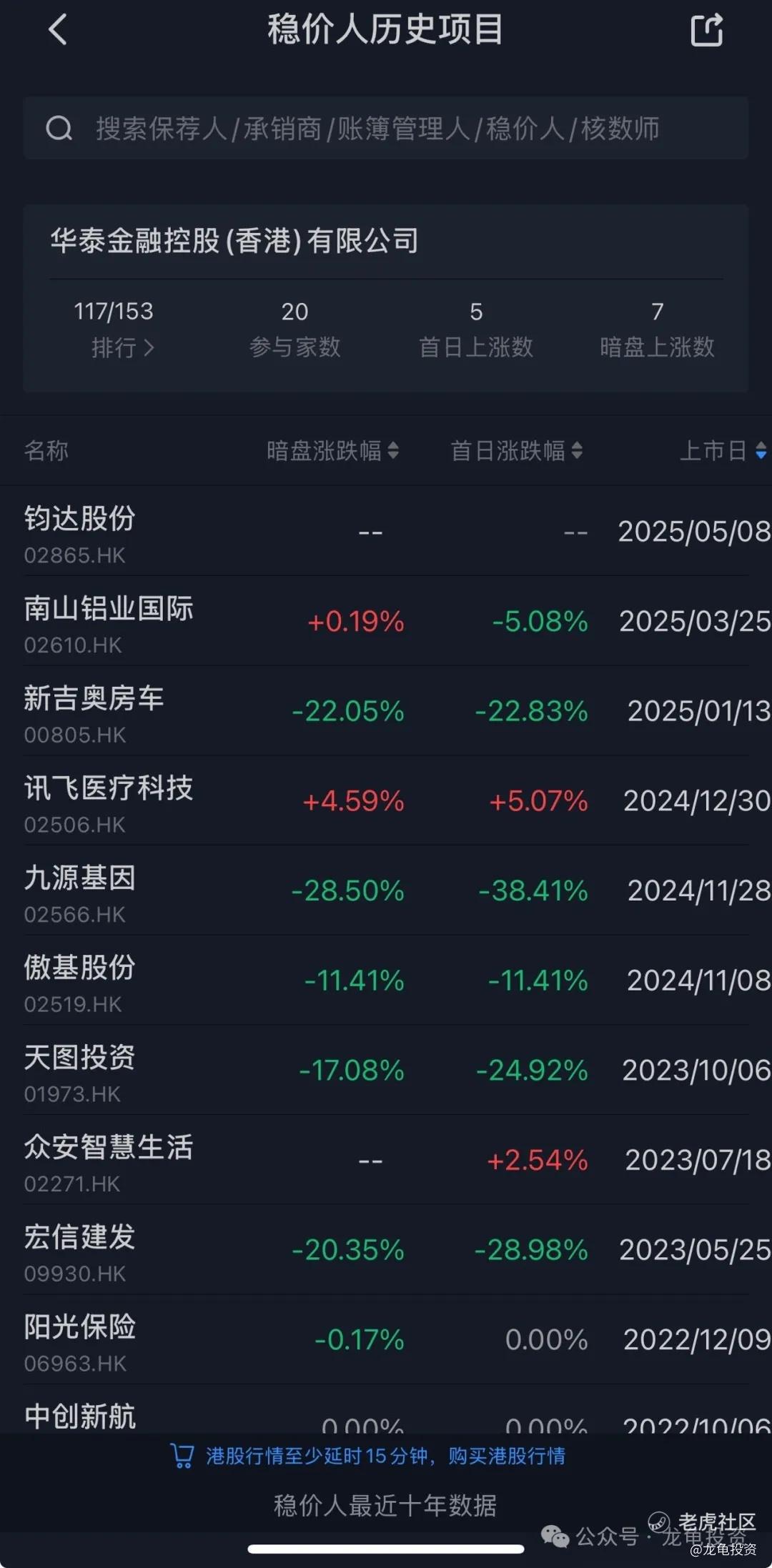 本次公司由华泰金融、招银国际和德意志证券联席保荐,稳价人由华泰金融担任;华泰和中信是现在港股打新市场的两奇观,一个一败涂地,一个不败神话;曾经也相信浪子回头金不换,结果被伤得名誉扫地。看看华泰的杰作:
