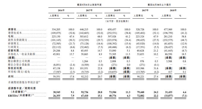 聆讯资料显示,截至2018年11月30日6个月里,公司的营销开支约1.53亿元,较上年同期增长了244.79%。其中,线上媒体推广、销售推广和线上营销活动的开支上年同期均出现了大比例的上升。