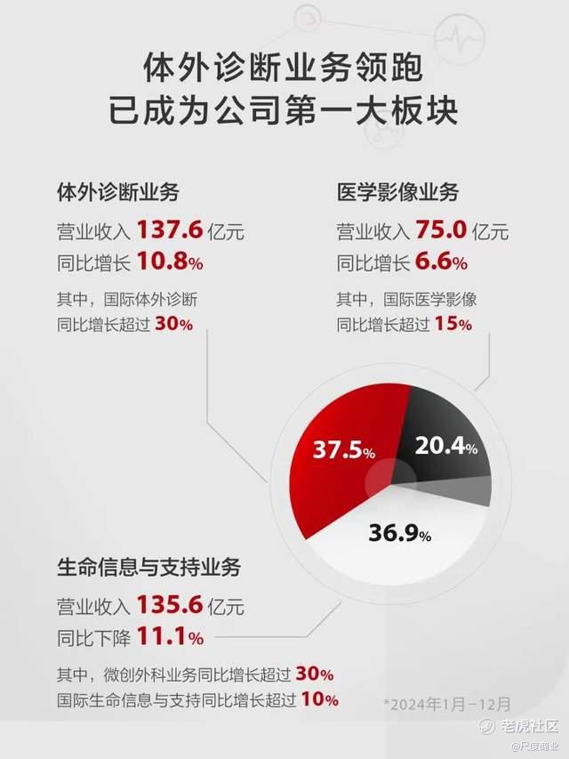 2024年度,由于国内市场的各种客观原因,迈瑞医疗国内业务同比下降5.10%,但受益于国际业务高增长,公司整体业绩仍保持稳健向上。