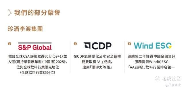 珍酒李渡的ESG表现,堪称行业典范。2024年,珍酒李渡首次参与全球三大ESG评级机构标普CSA ESG评级,得分位列中国白酒行业第一;持续保持万得ESG“AA”评级,并连续两年入选万得“中国上市公司ESG最佳实践100强”榜单,是白酒行业唯一上榜企业。