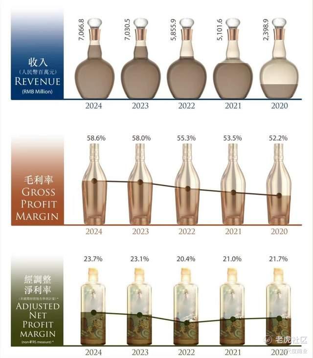 截至4月25日收盘,根据已披露的8家A股白酒企业年报数据,珍酒李渡按A股准则计算的75.5%毛利率紧随贵州茅台与五粮液;经调整净利率23.7%,也排在行业第三位,远高于A股20家白酒股2023年20%左右的净利率均值。