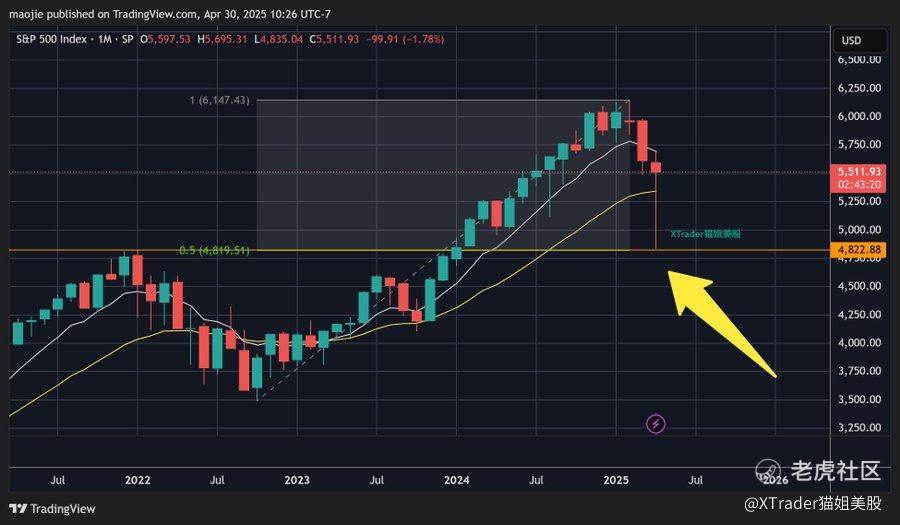 有生以来最波澜壮阔的月线,精准回测23年上涨行情的50%腰斩线,应该说美股还是很技术的。