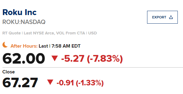 Roku (ROKU)第一季度每股亏损0.19美元,比市场预期值亏损0.26美元好0.07美元;营收同比增长15.8%至10.2亿美元,市场预期值10.1亿美元。该公司下调了第二季度业绩指引,预计第二季营收约为10.7亿美元,市场预期值10.9亿美元。