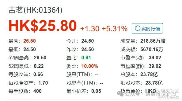 昨晚美股大涨,今天白天港股大涨,作为沪上阿姨最接近的标的,古茗今天大涨了5.3%,PE一下子去到了39倍,跟雪王并驾齐驱了