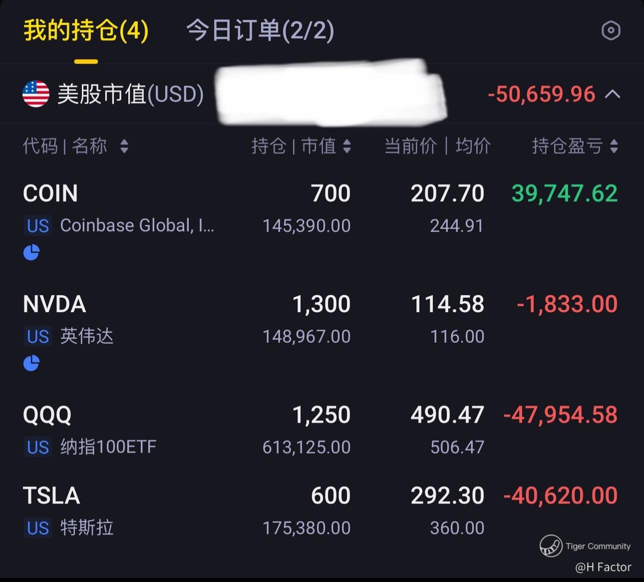 QQQ 裸空新单成交,Coin 裸空新单未成交。