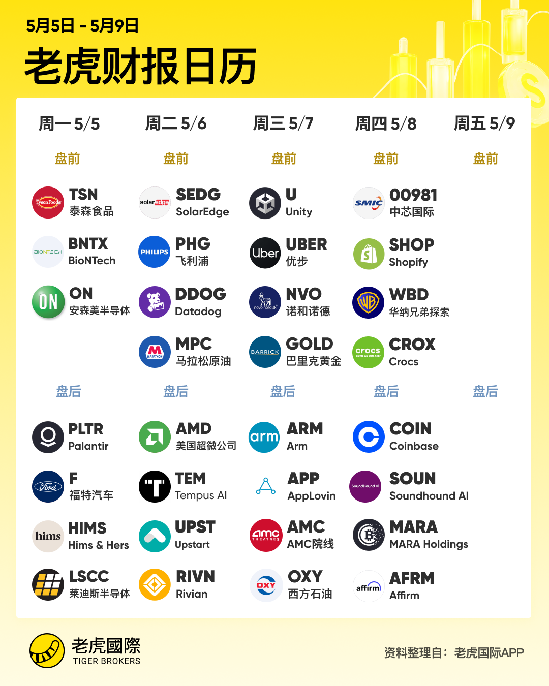 本周将迎来科技股财报密集发布期,AMD、Datadog (DDOG)、ARM、AppLovin (APP)、SoundHound (SOUN)、Upstart (UPST)、Unity (U)、Shopify (SHOP) 等热门公司即将公布业绩。AI浪潮仍在持续,但市场对高估值科技股的财报表现愈发谨慎——谁能交出超预期成绩?谁可能面临调整?📢 快来参与竞猜,赢取虎币奖励!