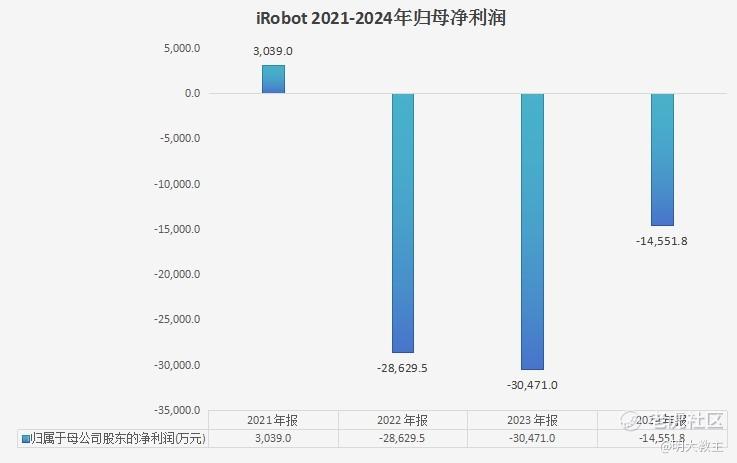 即使如此,iRobot 也没能较好的控制亏损。2022至2024财年,iRobot分别亏损2.86亿美元、3.04亿美元和1.45亿美元。去年Q4,iRobot单季亏损7710万美元,还较23年同期亏损6359万美元有所扩大。iRobot在石头科技等中国企业的冲击下节节败退,未来“卖身”的可能性较大。
