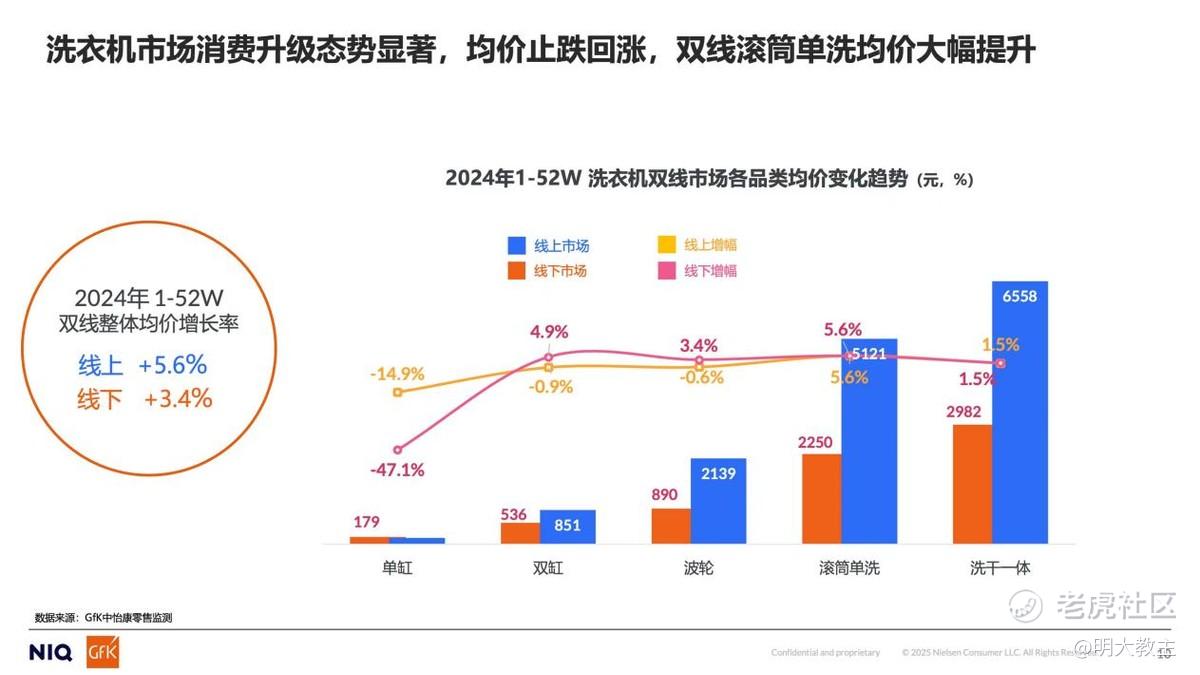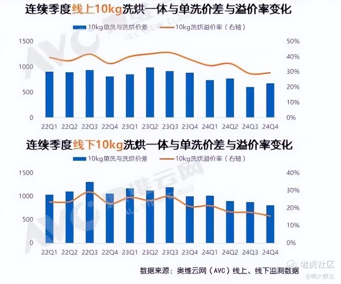 2024年线上、线下洗烘一体机均价分别为6558元和2982元,均上涨了1.5%。