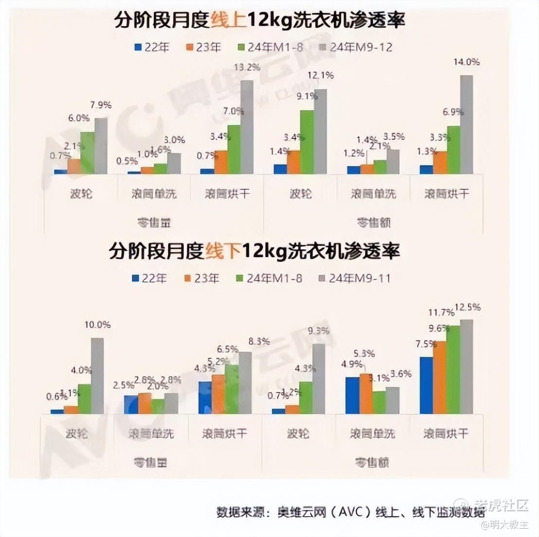 国补也是不容忽视的一环。随着去年三季度国补落地,消费者“尝鲜”洗烘一体机的意愿增强。在去年国补落地后的9-12月,国内线上洗烘一体机销售量/零售额渗透率升至13.2%和14%,线下销售量/零售额渗透率升至8.3%和12.5%。