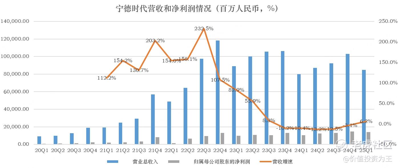 除了打新外,宁德时代的基本面明显好转,今年一季度,公司营收847亿,同比增长6.2%,结束了此前连续5个季度下滑的局面,净利润更是达到140亿,同比增长33%: