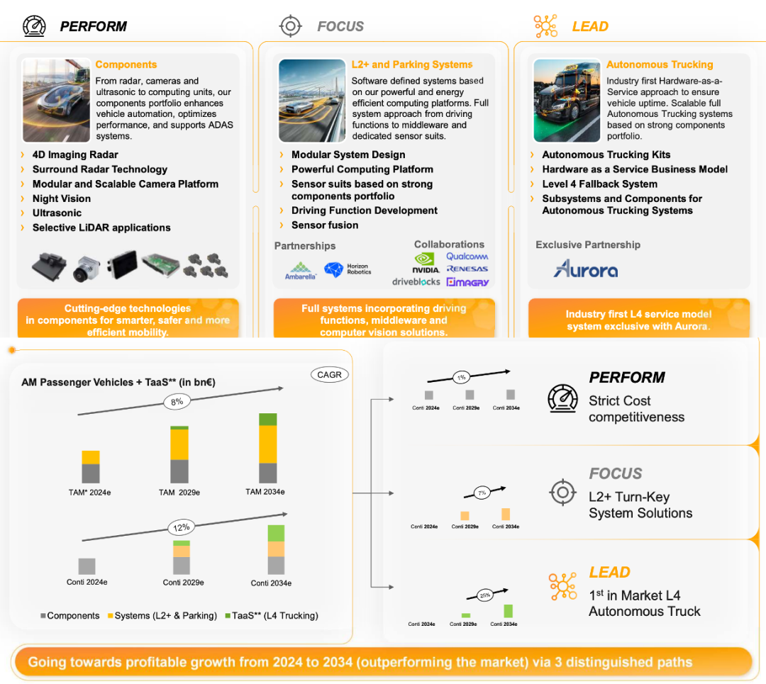 ◎ PERFORM:以成本效益为核心的模块化组件供应。 依托传感器与控制单元的硬件能力,大陆希望在ADAS组件市场中继续保持高性价比优势,实现稳健现金流。