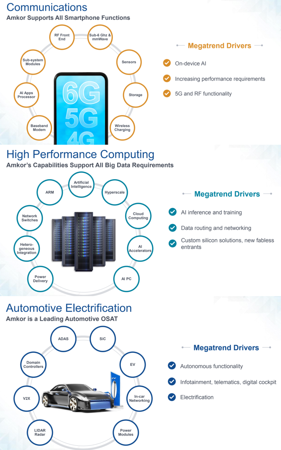 在汽车、手机等传统强势市场整体回调的背景下,Amkor成功在AI、消费类电子等新兴领域拓展营收来源,是其结构性抗压能力的体现。