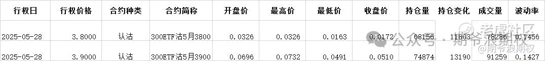5月的期权盘路,认购认沽都是低行权价减仓高行权价增仓。其中认沽增仓最为明显,如下图,3800沽增仓1.1W张,3900沽增仓1.3W张。