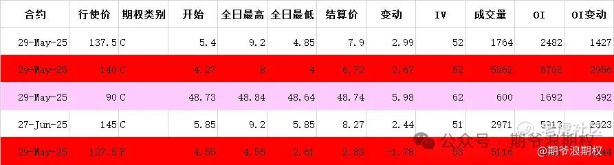 (2)美团:今收138.5,大涨4.53%,K线位于布林线中部,期权盘路比较冷清,没什么特别的。