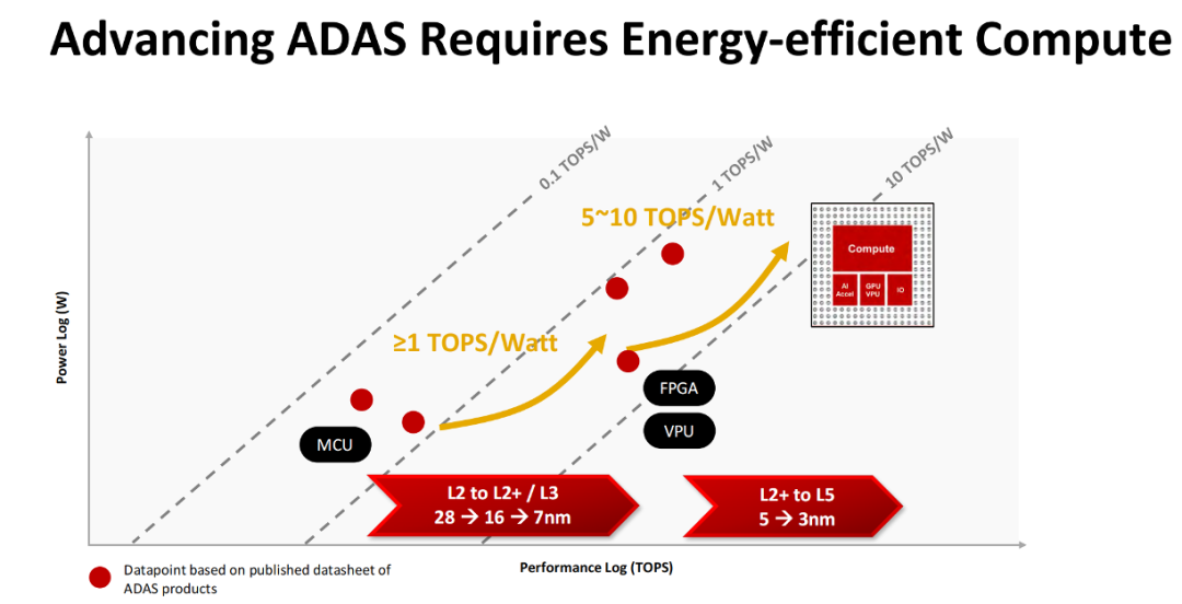 ◎ 中级FPGA/VPU:5~10 TOPS/W,用于L2+/L3场景;