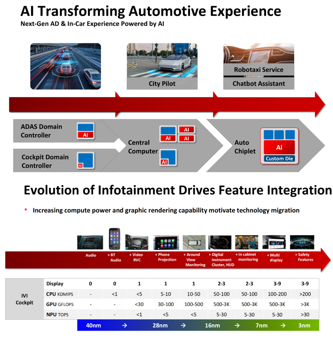 通过模块化设计,可将AI核心、ISP、MCU、CAN控制、Sensor Hub等功能分别制造并组合封装,既提升灵活性与定制性,又缩短开发周期,同时降低良率风险与生产成本。