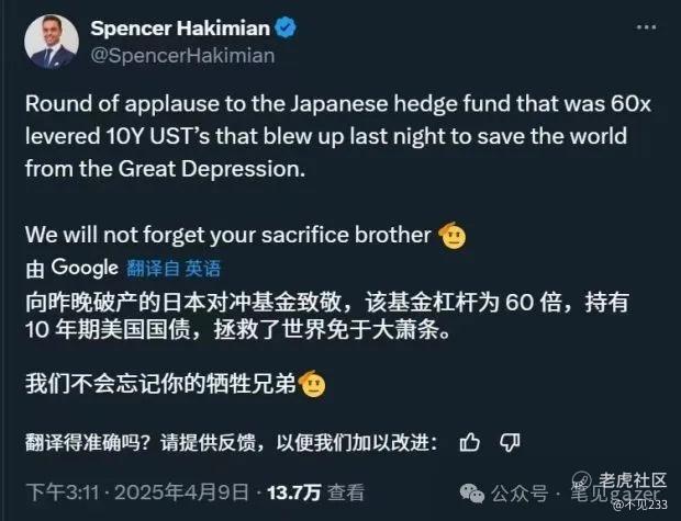 而关税战的惊涛骇浪,美债收益率飙升,套利交易面临大幅亏损之余,交易机构面对极端行情,纷纷要求追加保证金,压死骆驼的最后一根稻草。