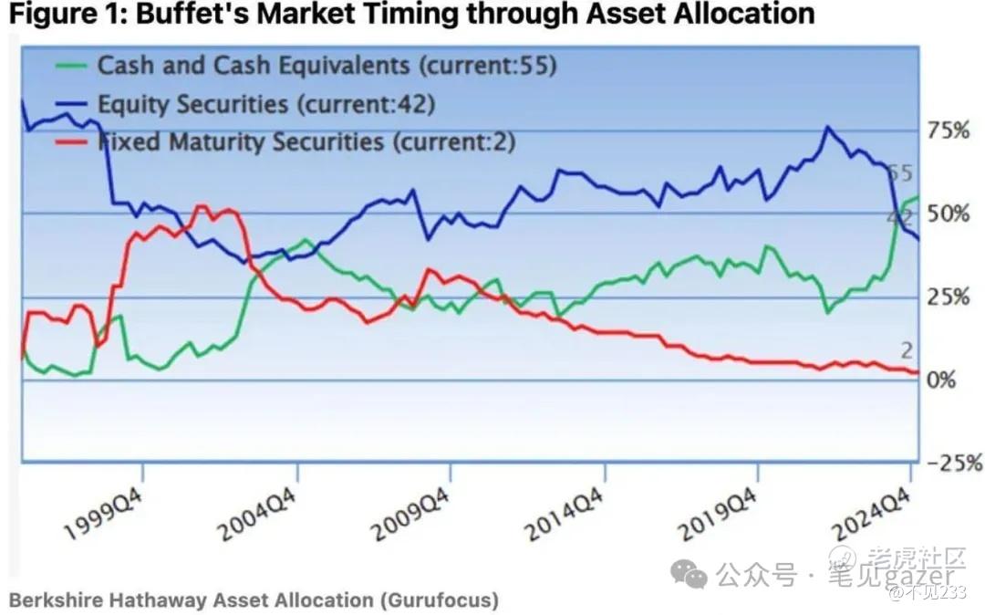 截止于2024年末,类现金仓位(短债+现金)占比55%,固收资产(长端债券)占比2%,权益类资产42%。
