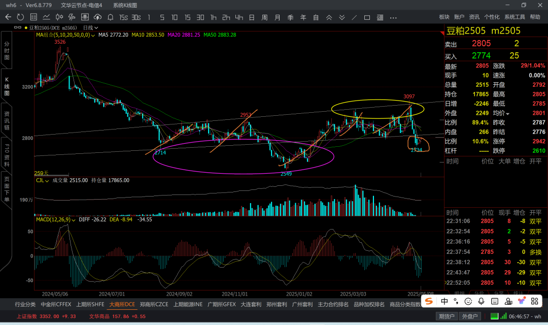 25-5-10 商品机会之豆粕又震荡下来慢慢做多