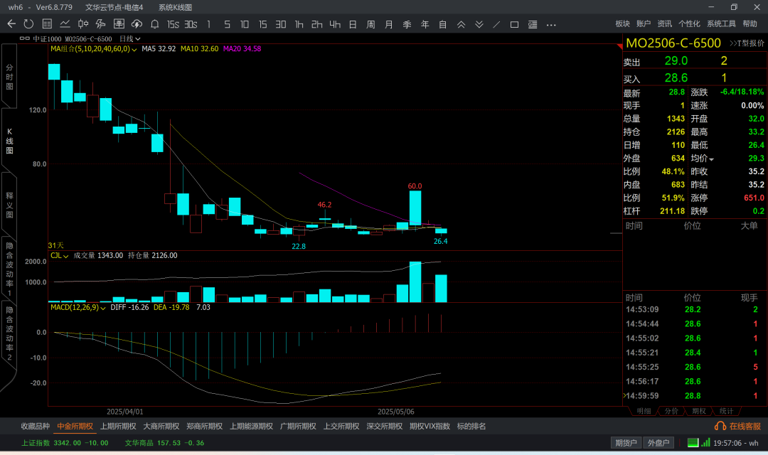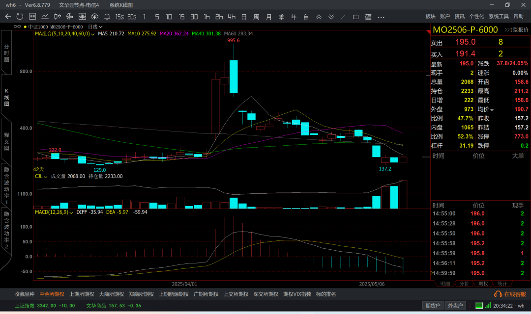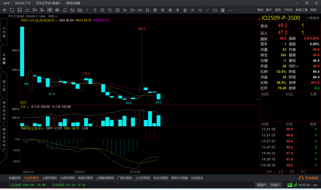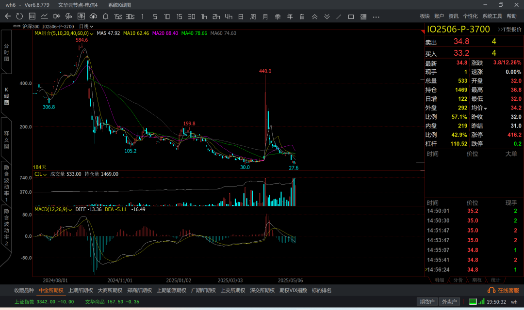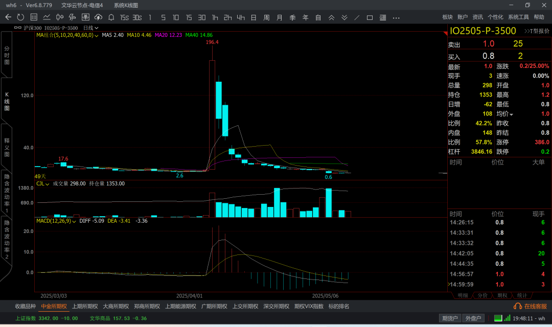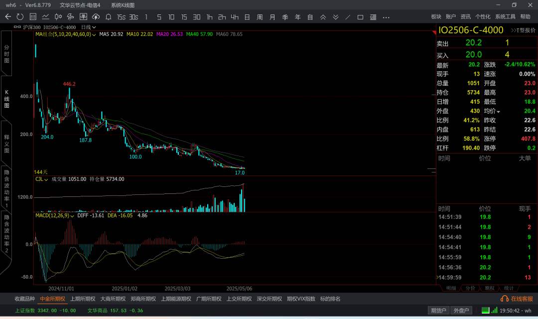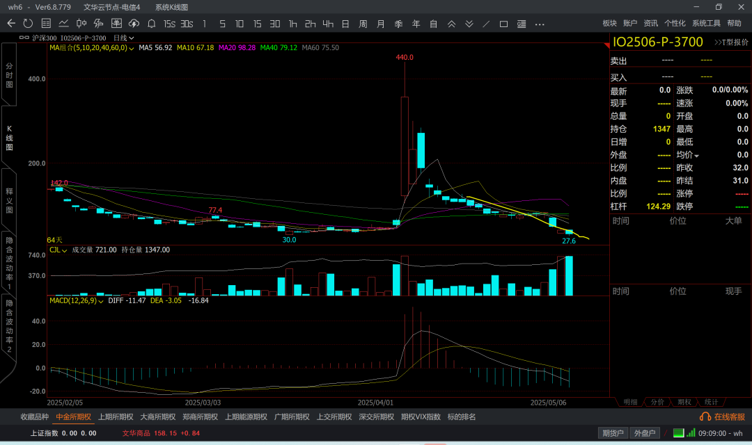 涨到6k5附近,那么认沽6k4成本大概在200附近了