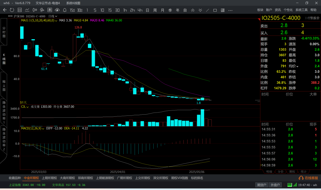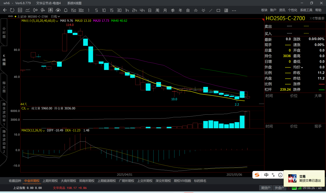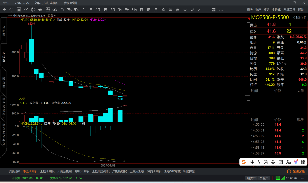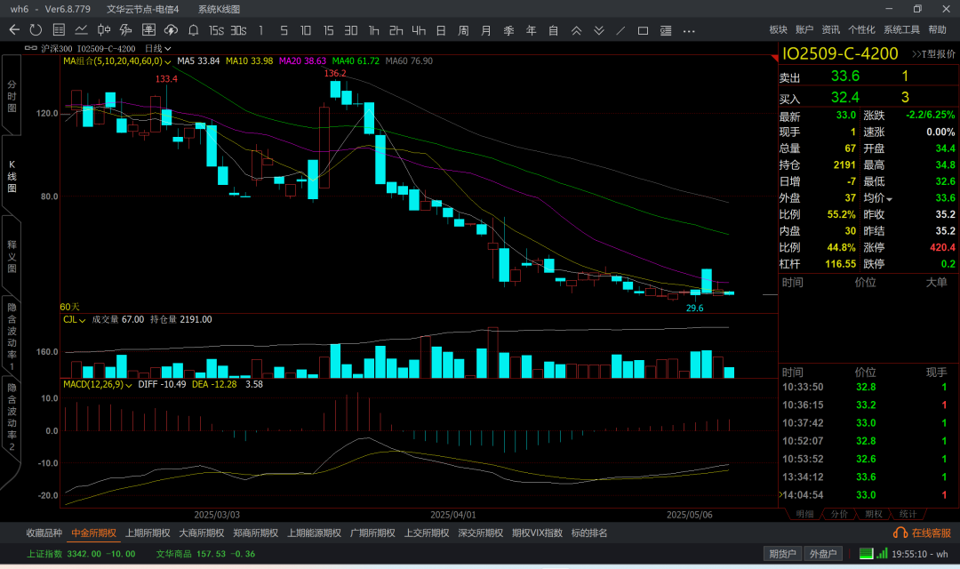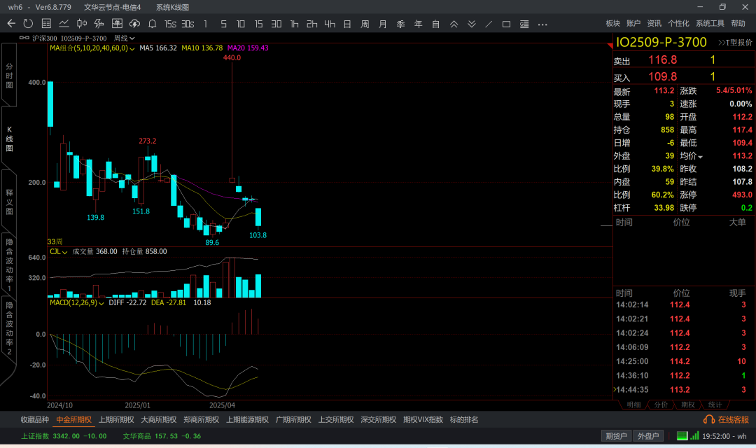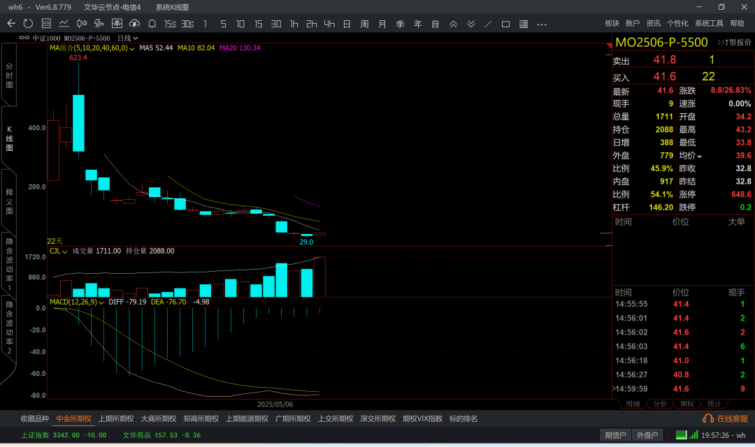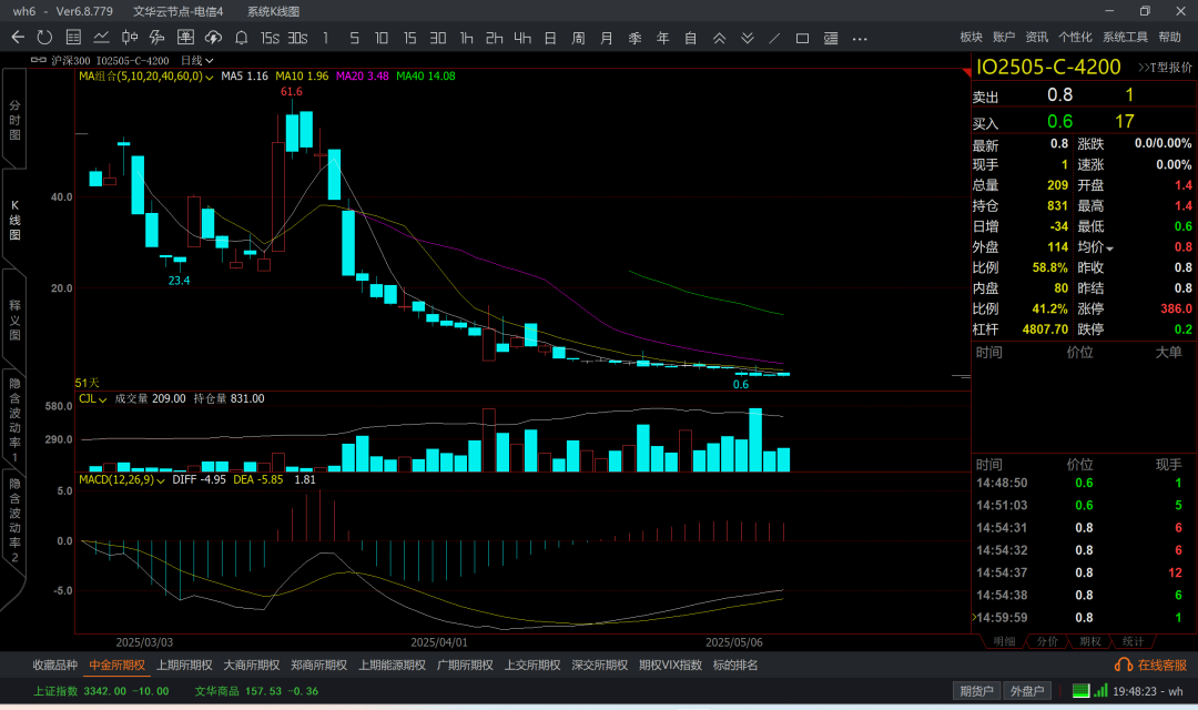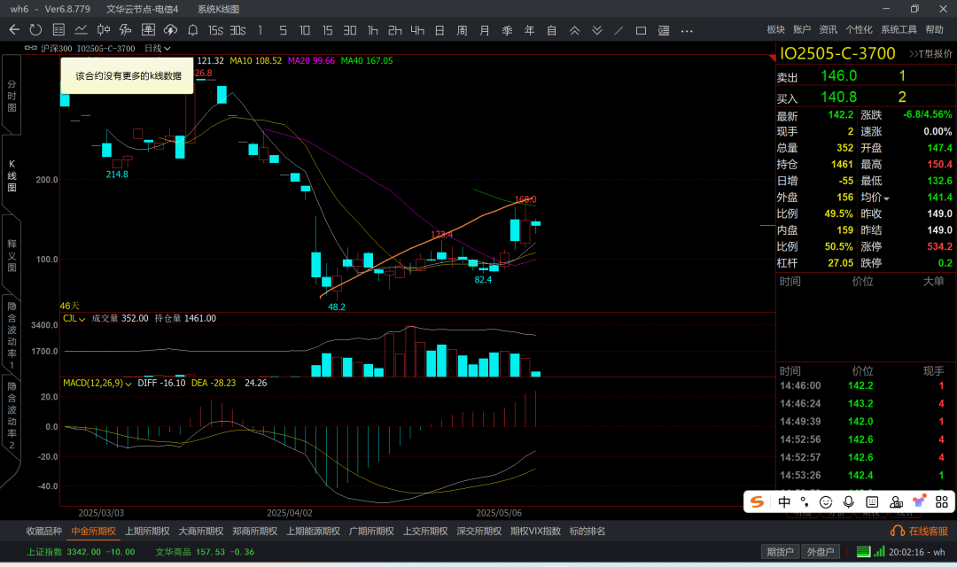 涨到6k5附近,那么认沽6k4成本大概在200附近了