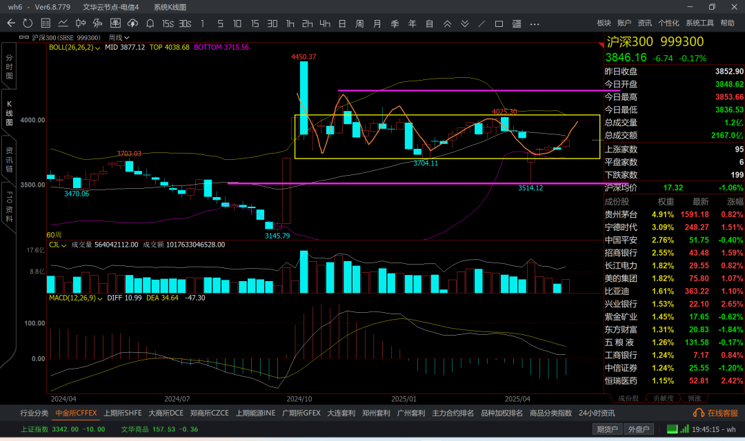 比如说沪深300就是在两个框框内运动,没破之前按震荡做,破了继续移仓双卖购沽即可。