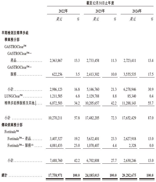 觅瑞已开发两个业务分部:早期检测及精准多组学分部(提供各种疾病早期检测产品及服务、多组学候选发现及临床基因组检测)、传染病分部。