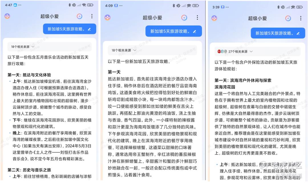 数据显示,17%的小爱大模型用户会使用智能旅行规划功能。小爱同学大模型技术除了会用携程、小红书、大众点评等平台的公域数据训练外,还能融合新加坡旅游局的专属数据。新加坡旅游局不断加大数据开放力度,将当地的景点内容介绍、节庆活动溯源、入境相关服务等信息导入小米AI大模型底层数据架构,让系统不断学习、结合用户互动,优化对话策略,让生成式AI旅行助理的结果更精细、逻辑性更强,可用性越来越高。