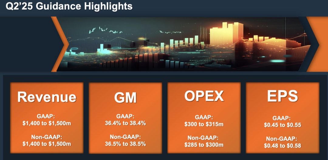 从未来一至两个季度的展望看,公司预计2025年Q2收入将在14 - 15亿美元之间,环比维持稳定;非GAAP毛利率预期介于36.5%至38.5%,仍将处于健康区间,预计利润回升趋势将逐渐确立。这反映出公司对订单节奏恢复及成本结构改善的自信。