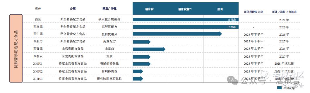 就特医食品产品线而言,截至最后实际可行日期,公司已推出两款非全营养配方食品产品,且管线中有七款候选产品,包括三款特定全营养配方食品(即特医食品产品线近期的重点)。