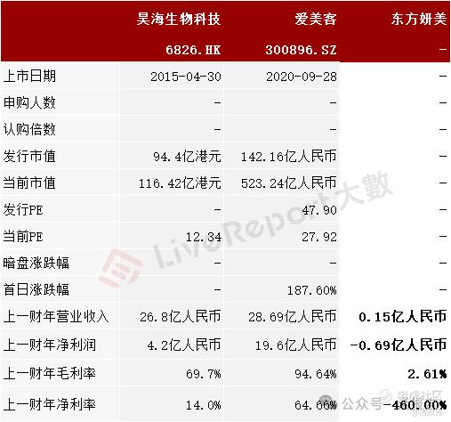 本次选取的同行业对比公司为:爱美客(300896.SZ)、昊海生物科技(6826.HK)