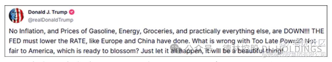 随着5月12日中美贸易关系缓和,5月13日特朗普就迫不及待的发文喊话美联储主席鲍威尔降息。特朗普写道:“没有通货膨胀,汽油、能源、杂货以及几乎所有其他商品的价格都在下降!美联储必须降低利率,就像欧洲和中国已经做的那样。‘太迟先生’鲍威尔出了什么问题?这对正准备繁荣发展的美国不公平”。