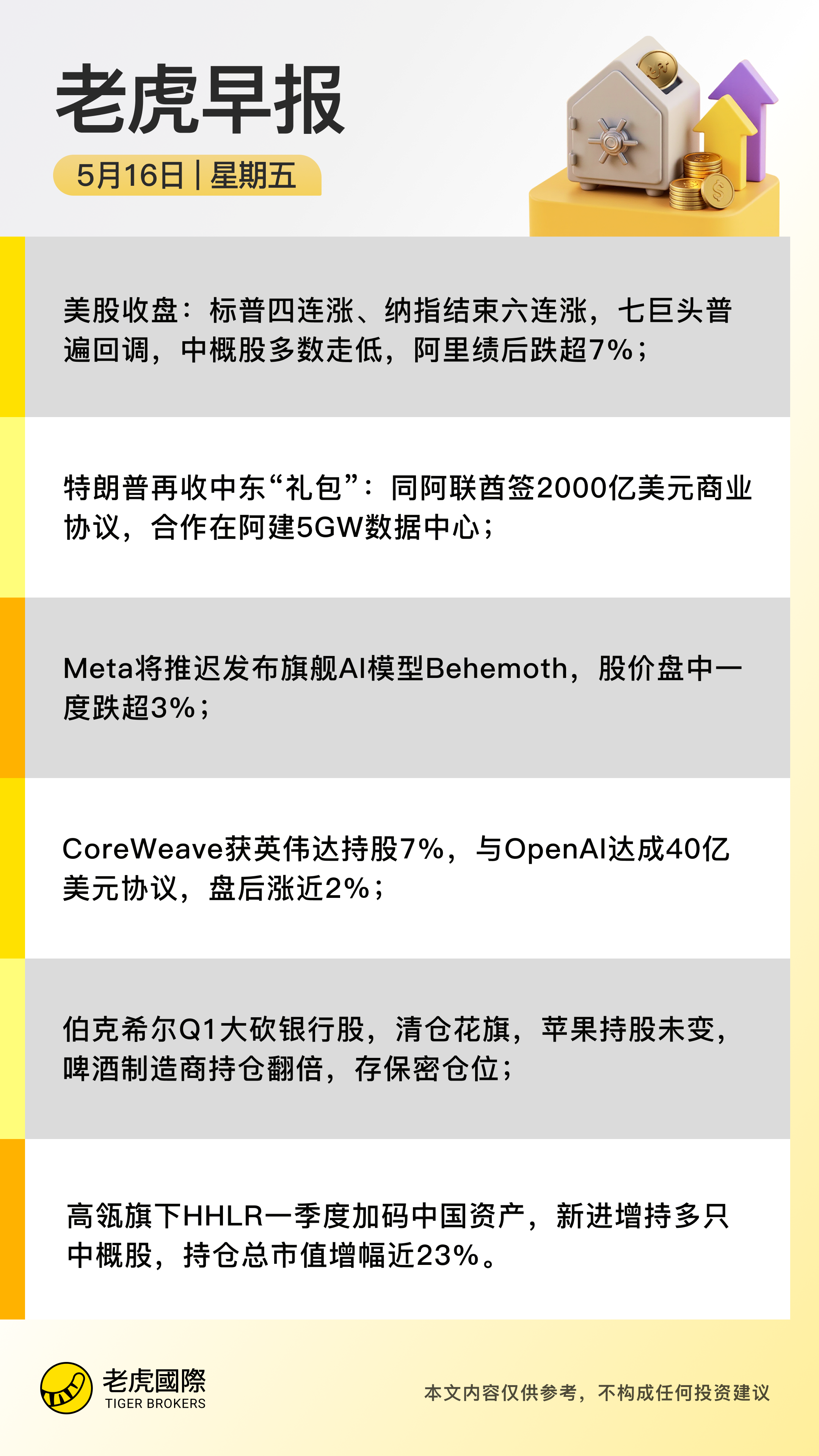 🚀【5月16日】纳指冲高止步,阿里“失速”大跌7%!今天买点啥?