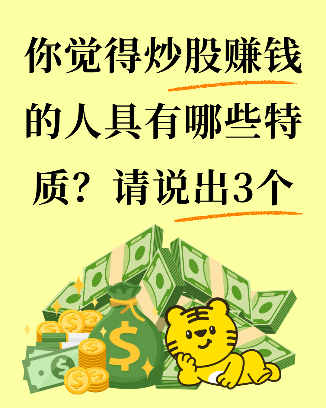 今天,小虎君想邀请广大虎友来聊聊:你觉得那些能在股市里赚到钱的人,最关键的3个特质是什么?是冷静?是贪婪?是耐心?是判断力?还是运气?欢迎你用一句话、一个段子、或者你的亲身经历,来告诉我们你的看法!
