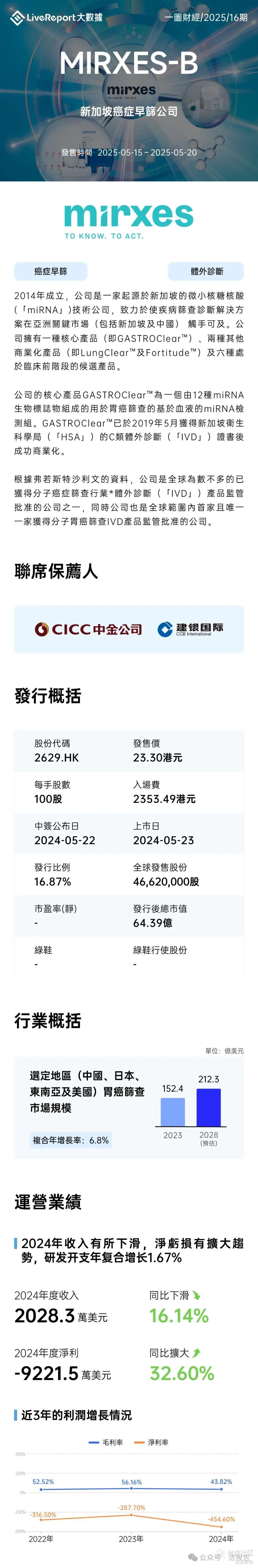MIRXES-B(2629.HK)招股日期为2025年5月15日至2025年5月20日,并预计于2025年5月23日在港交所挂牌上市。