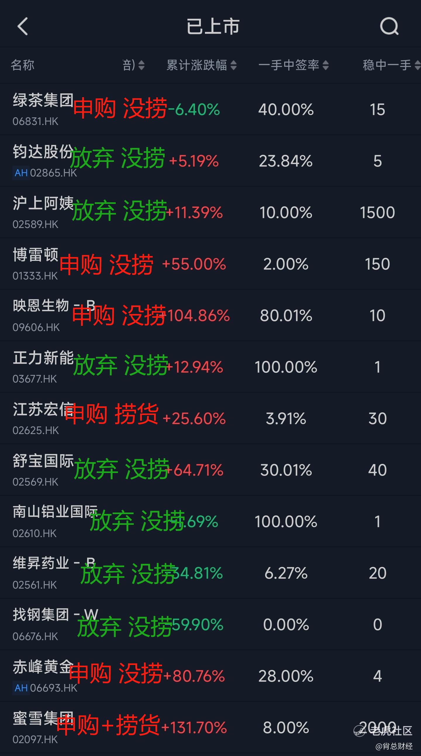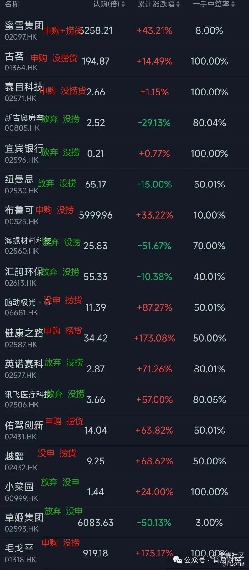 下面是圈子成立后,从毛戈平开始,公开的一些打新和捞新操作,胜率几乎100%。