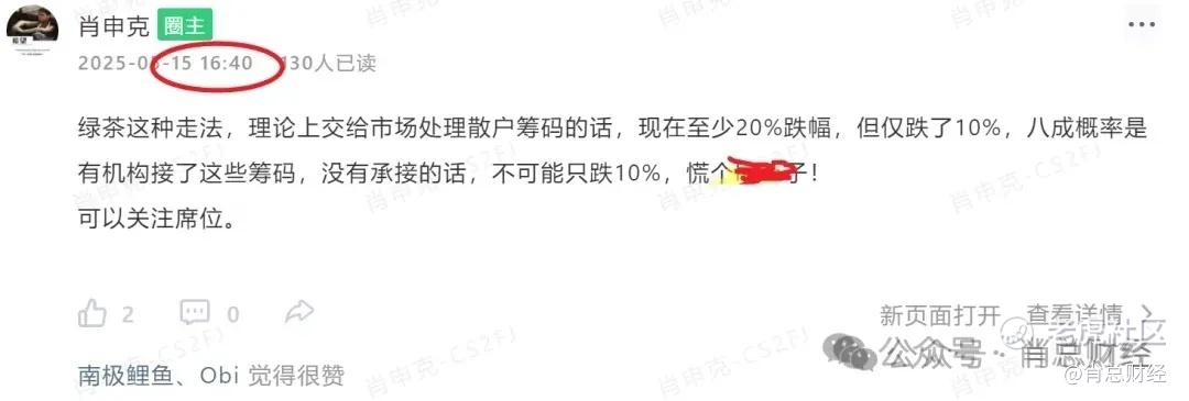 而且我给的建议始终是绿茶胜率也就50%以上,最多也就是个小涨。从来没给这个股高胜率的预期,像蜜雪那时候我直接明确给出80%以上胜率,这个绿茶55%胜率我都不太敢给。