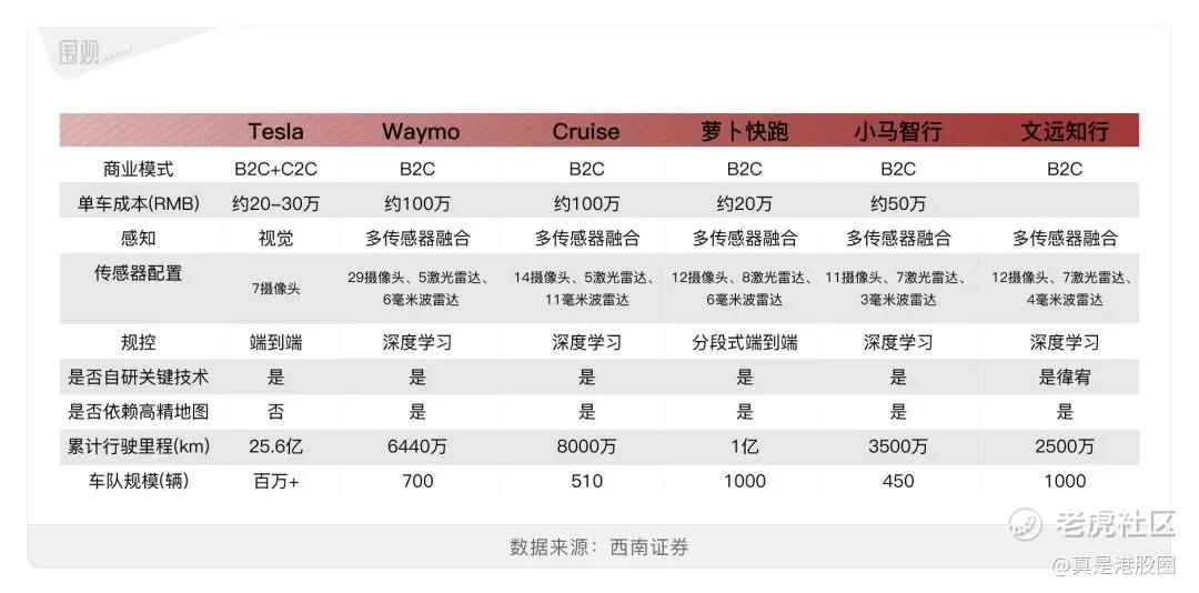 他们的思路是:只要robotaxi商业模式跑通了,这套软硬件方案搬到任何车都可以,因此可以实现渗透率跃迁。不用受车型和能源形式的约束,燃油车也可行,大量的存量车可以马上变成robotaxi,不要制造新车。而特斯拉这种主机模式就没那么容易了,要重新设计,重新开始生产。