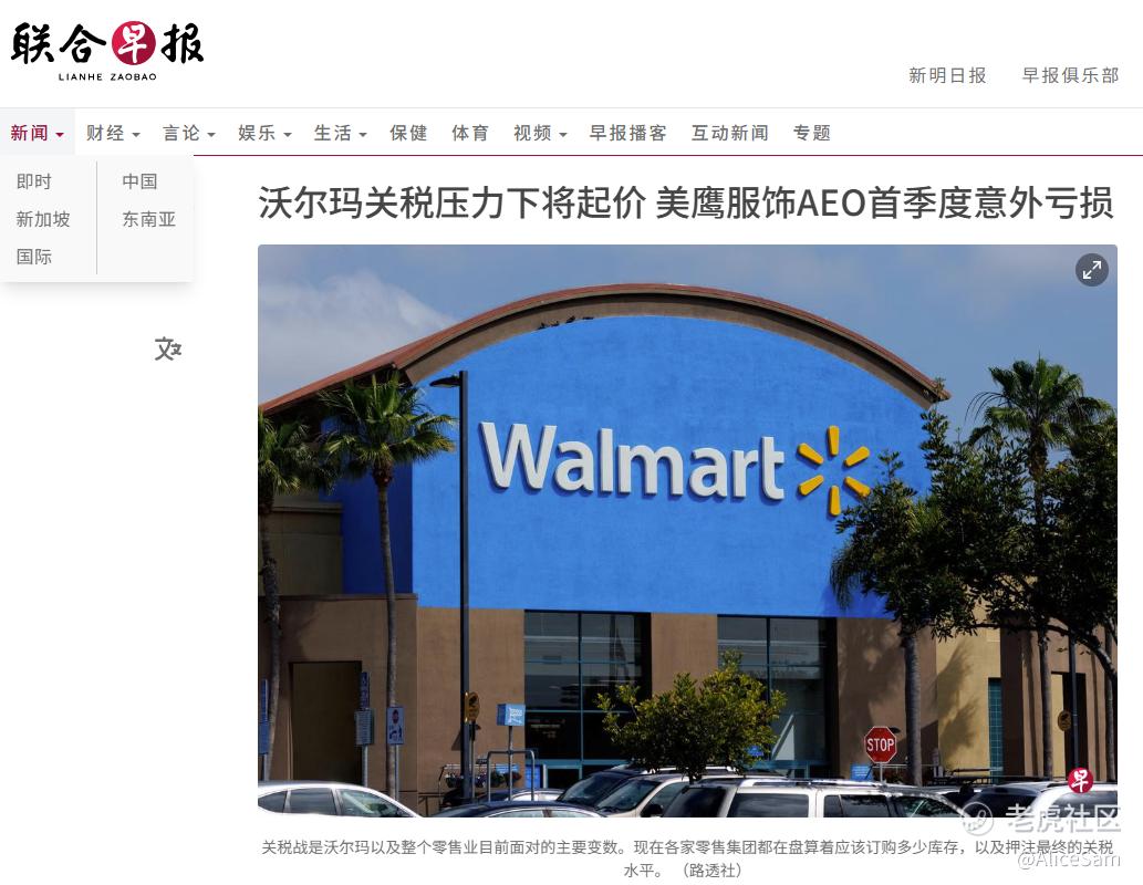 以前我经常关注 $沃尔玛(WMT)$ 的动态,特别是关税一起来,超市就是最大的波动型行业了,进货出货都跟关税有关,这不,联合早报也报告了沃尔玛受不了这个关税了,决定要起价了。他们的首席财务官雷尼(John David Rainey)说,即使最近宣布的协议将中国进口商品的关税降至30%,为期90天,关税“仍然过高”。他说:“我们每天都希望能够降低价格,而这些关税增加的幅度,超出任何零售商的承受能力。我担心消费者会开始看到市场产品的价格上涨。大家很可能会在本月底开始看到这种情况,然后在6月份零售价肯定会有更大的涨幅。”