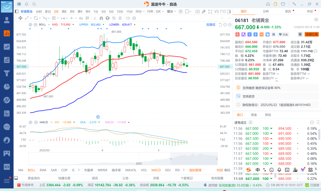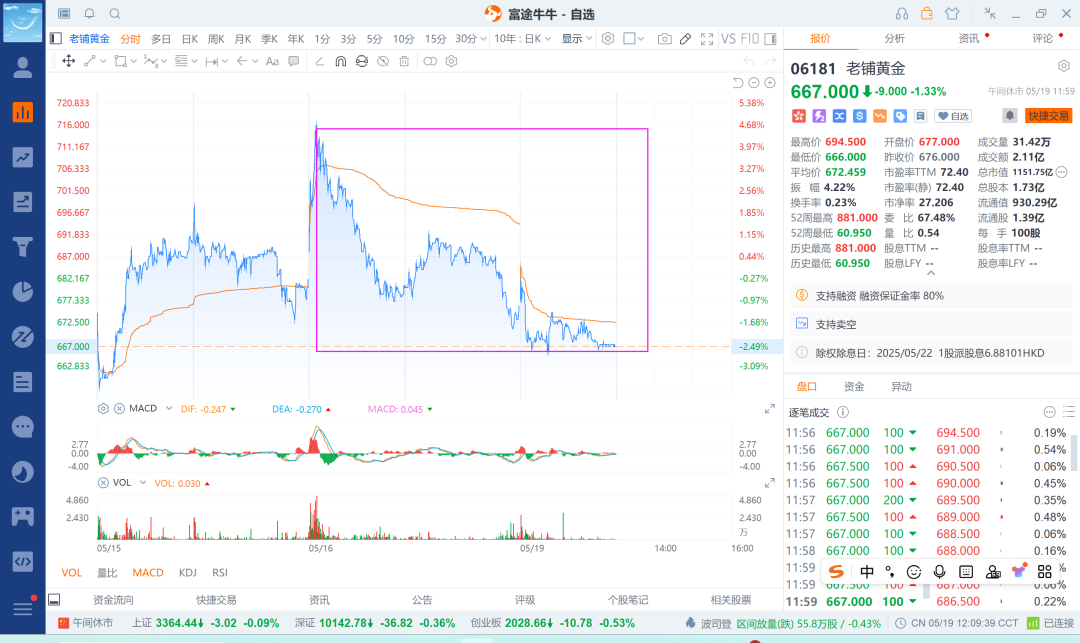 25-5-19 港股融券之老铺黄金跌下来t出一笔