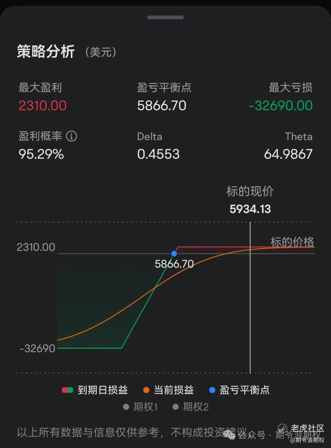 对的地方:就是行情判断正确,最终当日收盘在卖沽的5870以上,到期两条腿都归零,权利金落袋为安。同时,策略用的是对冲策略,把最大风险锁死。