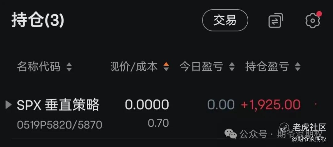 这个做的是美股标普500指数的日期权,所以当日到期当日盈利1925美刀。因为是用put(认沽期权)构建的牛市价差策略,A股和港股都可以用,只是A股只有月期权,港股有月期权和周期权,周期不同而已。