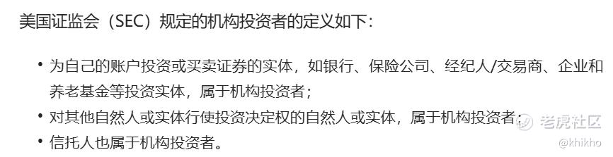 这里所谓的机构投资者,主要包括共同基金、对冲基金、保险公司、养老金基金等管理大量资产的机构。我们熟知巴菲特的伯克希尔、摩根大通,贝莱德、还有国内的高瓴、景林等等。