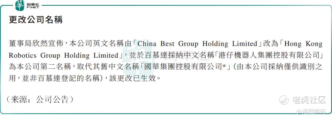 此外,5月6日,国华宣布由国华控股更名为港仔机器人集团控股,这也反映出其在人工智能和机器人领域转型的决心。